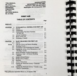 - Official military manuals combined: C1 FM 4-25.11 (FM 21-11), NTRP 4-02.1.1, AFMAN 44-163(I), MCRP 3-02G.