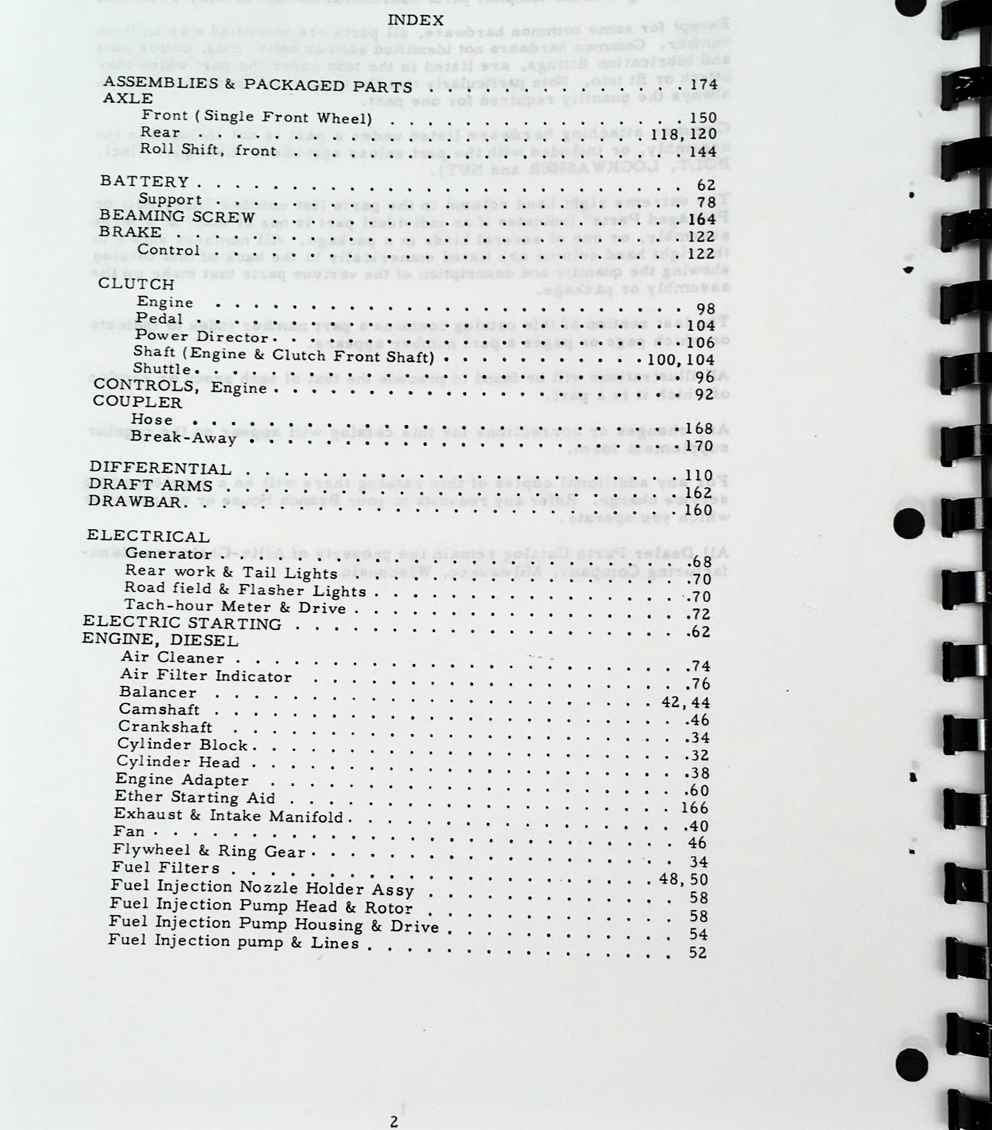 ALLIS CHALMERS 170 PARTS CATALOG