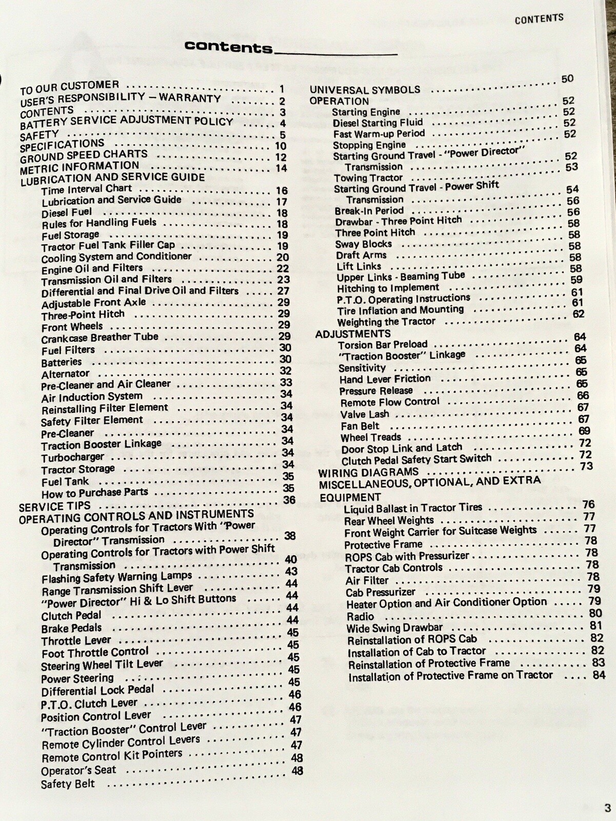 - Operator’s Manual offering clear instructions on tractor operation and safety.