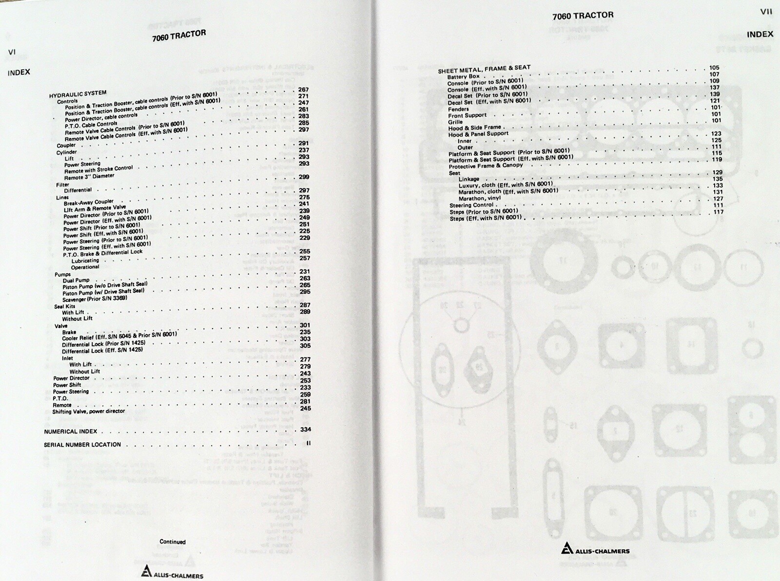 - Complete manual set for Allis Chalmers 7060 Tractor prior to serial number 6000