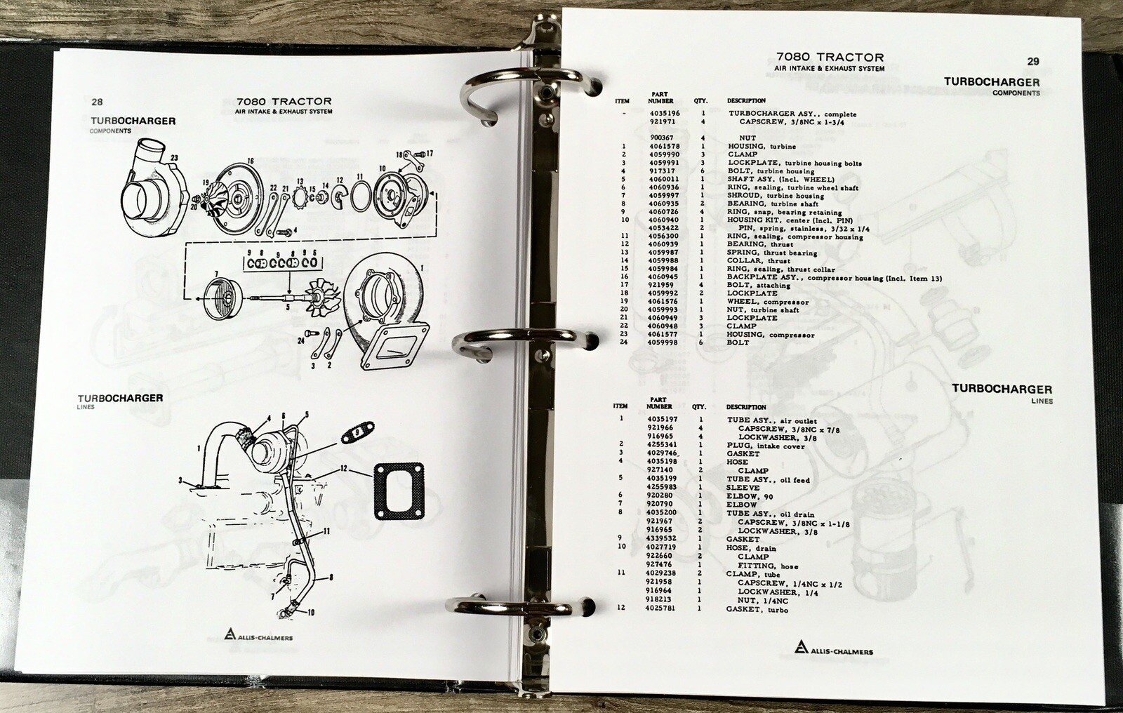 This comprehensive Allis Chalmers 7080 Tractor manual set is an essential resource for owners and technicians seeking detailed guidance on operation, maintenance, and repair.The set includes both a service/repair manual and a parts catalog, organized in a durable protective D-ring binder with fold-out schematics to facilitate easy reference during work. With a total of 859 pages, this collection provides thorough, OEM-based instructions and diagrams that help keep your tractor running smoothly and efficiently.