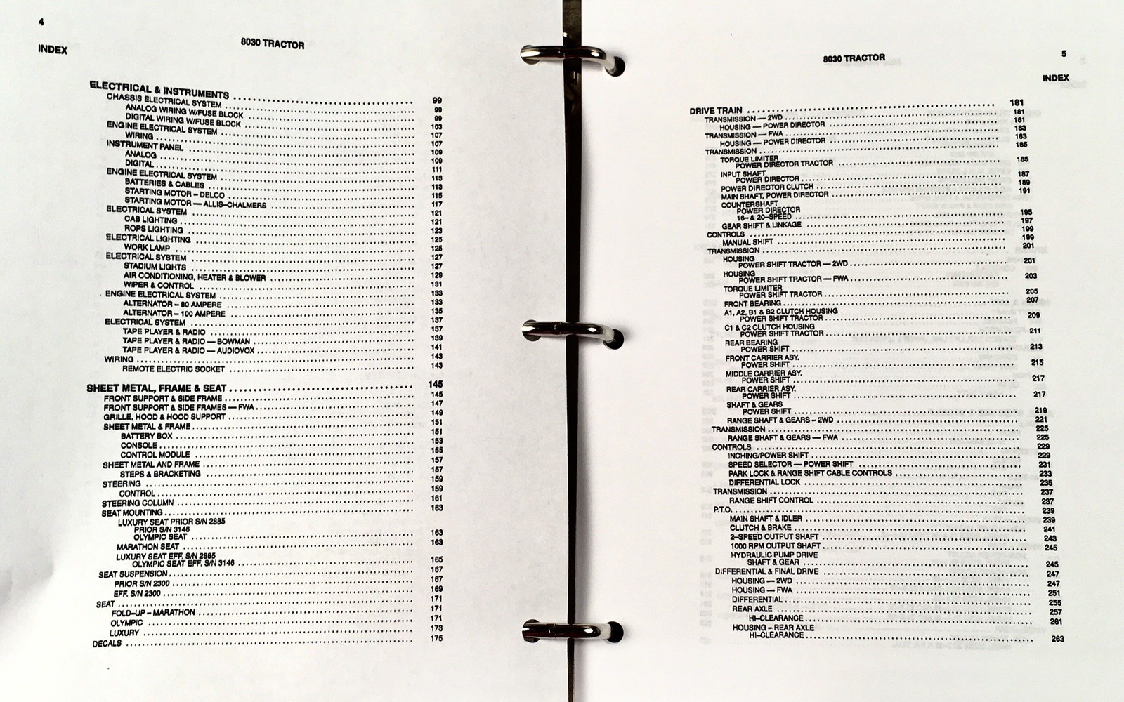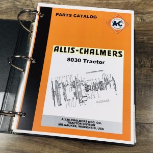 This comprehensive manual set for the Allis Chalmers Model 8030 Tractor offers essential information for operators, technicians, and mechanics to efficiently operate, maintain, and repair their equipment.The set includes both a detailed Service/Repair Manual and a Parts Catalog, all housed in a durable protective D-ring binder featuring fold-out schematics for easy reference. With a total of 1,376 pages, this official OEM manual reproduction provides extensive coverage of the tractor’s systems and components, making it an invaluable resource for workshop or field use.