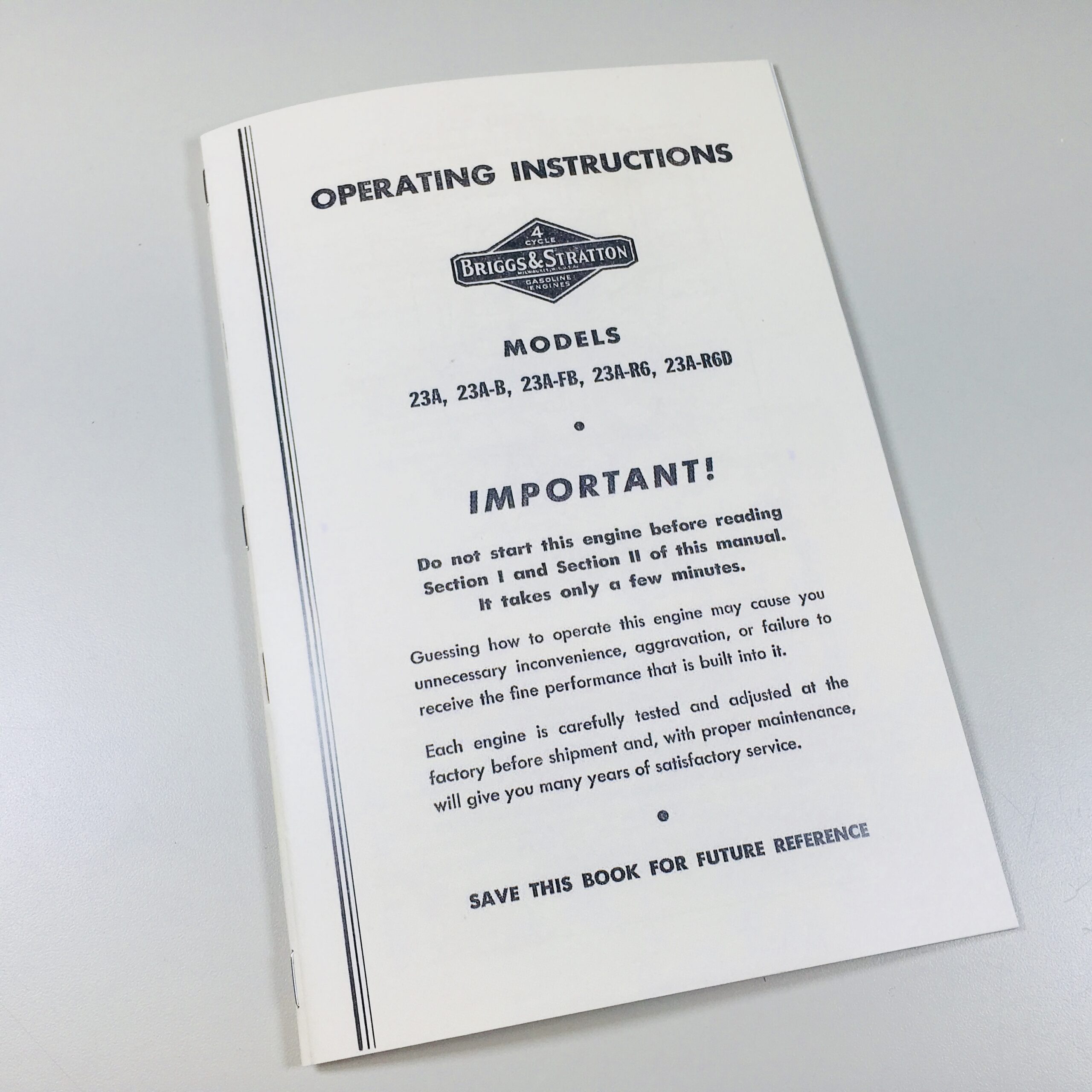 Briggs & Stratton Operators Manual Reprint