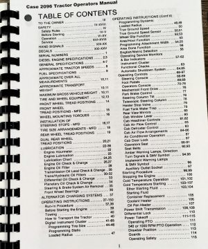 This complete Case 2096 Tractor Manual Set is an essential resource for owners who want to effectively operate, maintain, and repair their equipment.This professionally printed set includes a comprehensive collection of manuals housed in a durable protective D-ring binder with foldout schematics and section divider tabs for easy navigation. It features detailed service and repair instructions, a parts catalog, and an operator’s manual specific to the Case Model 2096 Tractor, serial numbers 17897500-17897505.