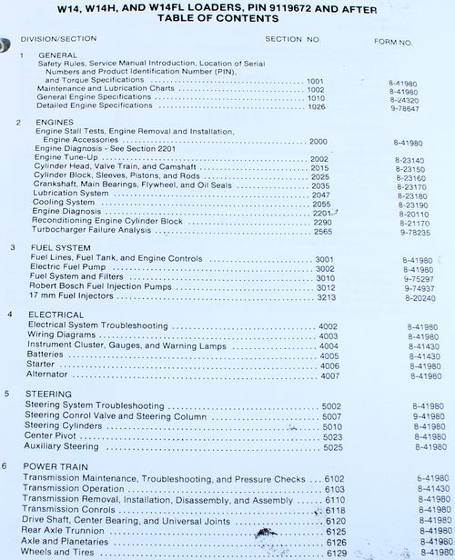 - Complete service, repair, overhaul, and parts manuals for Case W14 series wheel loaders
