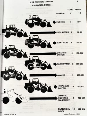 Comprehensive Parts Catalog Manual for Case W18B and W20C Wheel LoadersThis detailed manual is an essential resource for owners and operators of Case W18B and W20C wheel loaders, providing thorough information for faster and more accurate parts ordering. The manual features clear exploded parts views and line item drawings that eliminate guesswork and help users understand how assemblies fit together, especially useful when repairs are needed.