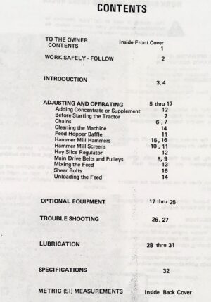 This Operators Manual for the International Model 1250 Grinder-Mixer delivers essential guidance for maintaining and operating your equipment efficiently.It provides detailed instructions designed to help users keep their machines in top running condition, ensuring long-term reliability and performance.