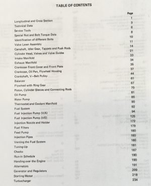 - Includes instructions for maintenance and servicing of diesel engines, hydraulic systems, electrical components, transmission, and fuel injection pumps