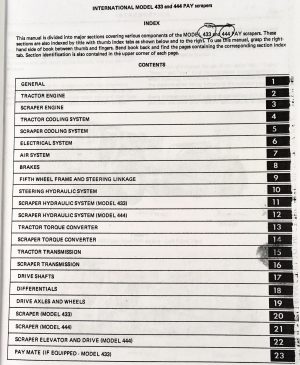 This comprehensive International 433 and 444 Pay Scraper Service Parts Operators Manual Set offers essential guidance for operation, maintenance, and repair of your equipment.