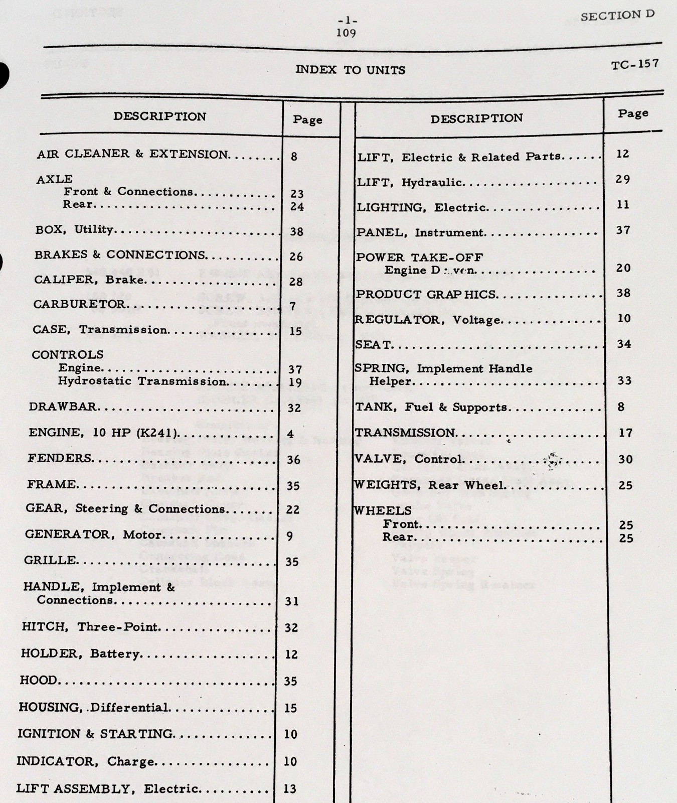 | Parts Catalog | Detailed listing and diagrams of all parts for the Cub Cadet 109 |