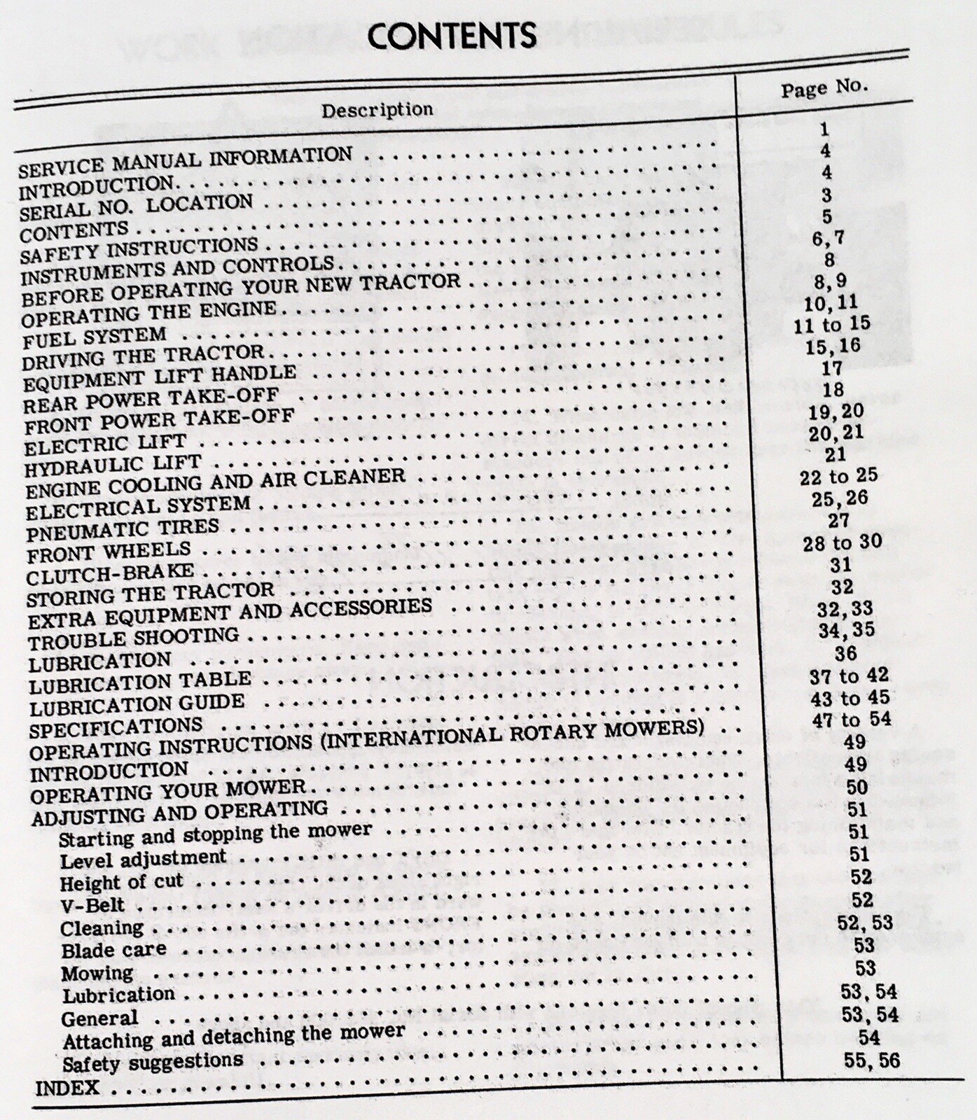Contents Parts Catalog, Operators Manual