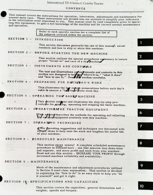 This Operators Manual is the essential guide for owners and operators of International (Dresser) Model TD-8C Crawler Tractors, offering comprehensive instructions to keep your machine in excellent working condition.It contains detailed information on the controls, features, and operations, making it easier to understand and effectively operate your tractor.