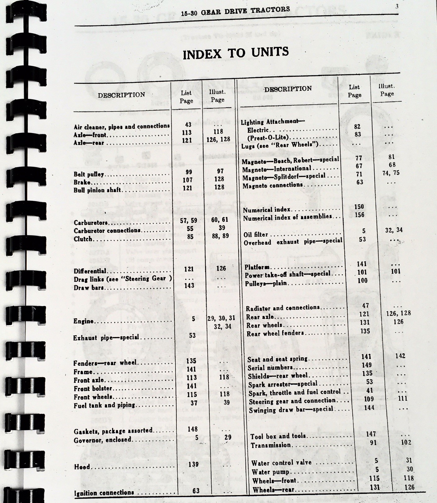 This Manual Set for International McCormick-Deering Model 15-30 Tractors provides comprehensive guidance to operate, maintain, and repair your equipment effectively.This set includes original equipment manufacturer (OEM) manuals reprinted in new prints for durability and usability. Ideal for owners and operators, the manuals cover detailed parts catalog and operator instructions tailored to tractors with serial number TG 99926M and up.