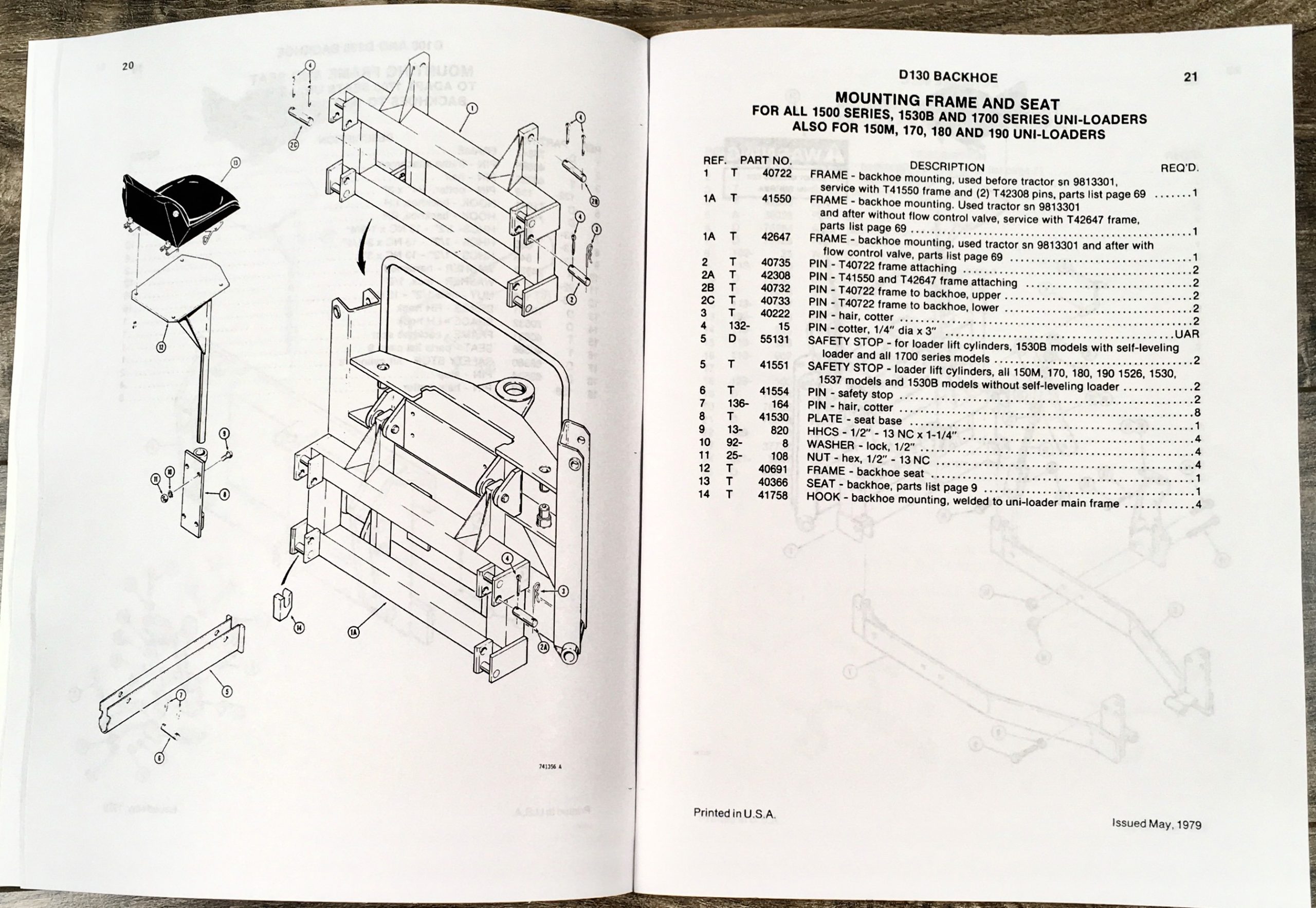 J I Case D100 and D130 Backhoes Parts Catalog Manual No. B1275