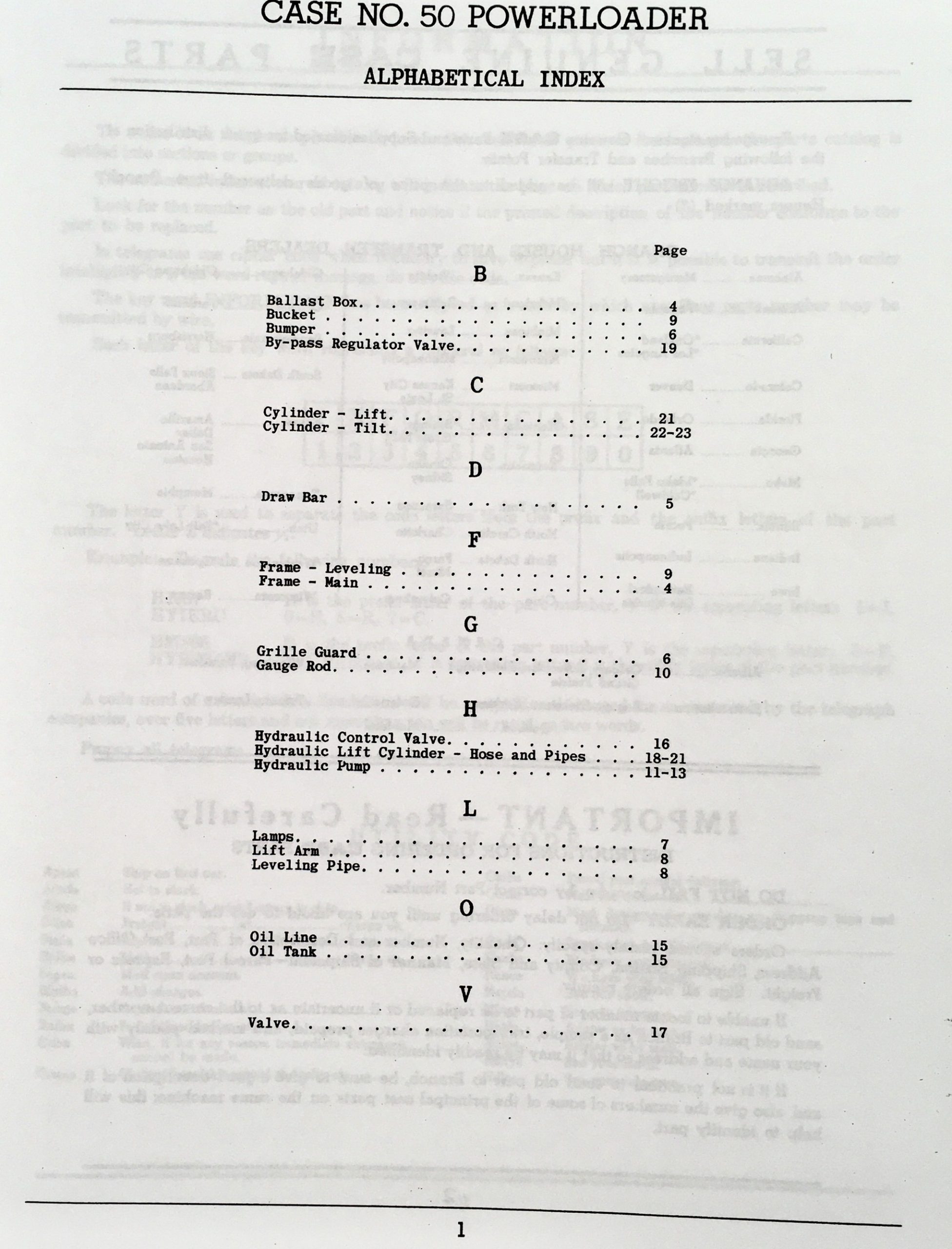 CASE 50 POWERLOADER PARTS MANUAL CATALOG