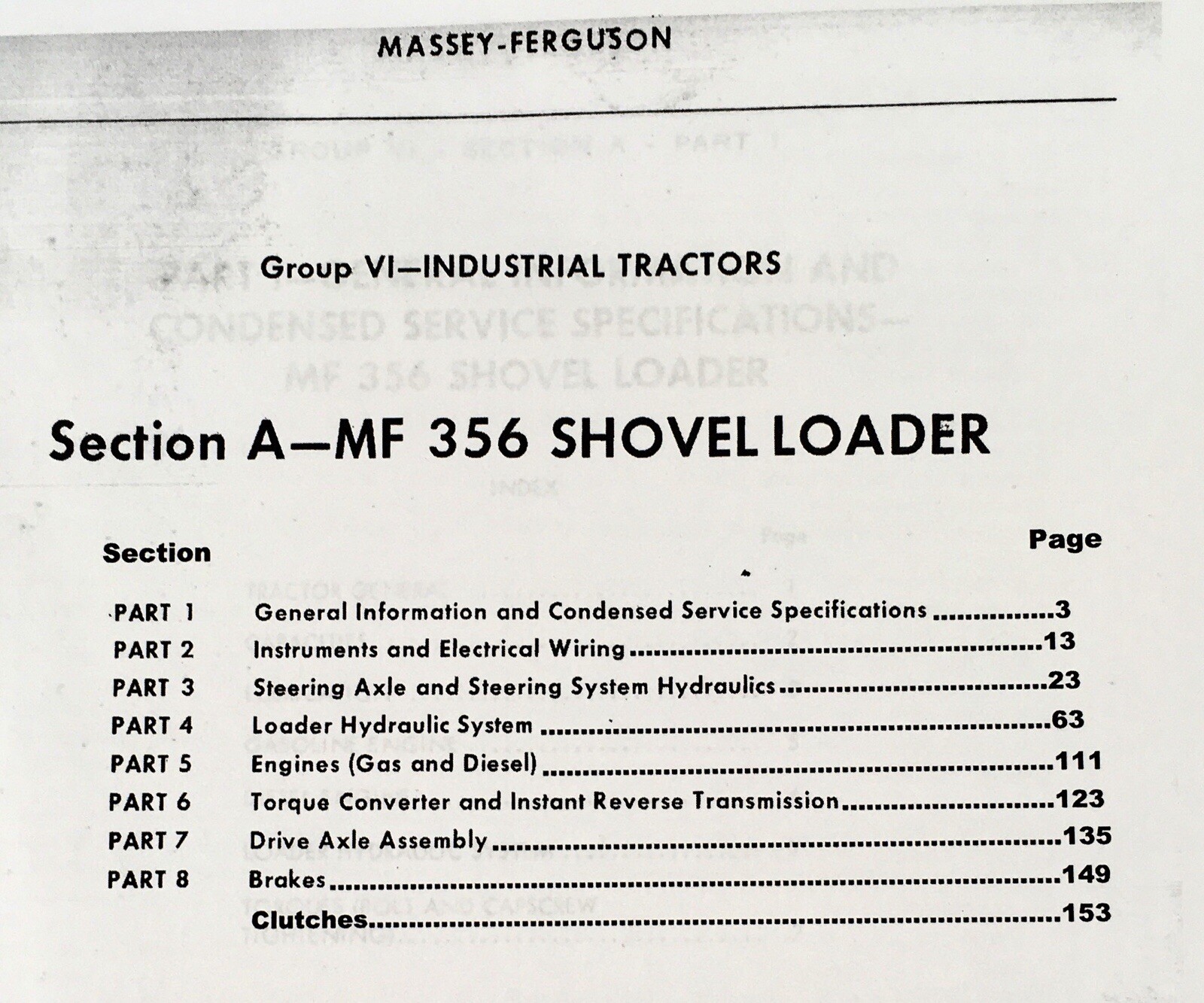 - Complete manual set for Massey Ferguson Model 356 Shovel Loader