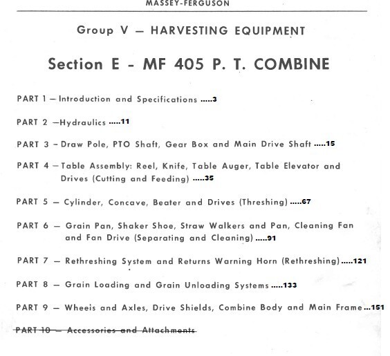 - Complete service and repair instructions specifically for Massey Ferguson 405 Pull Type Combine