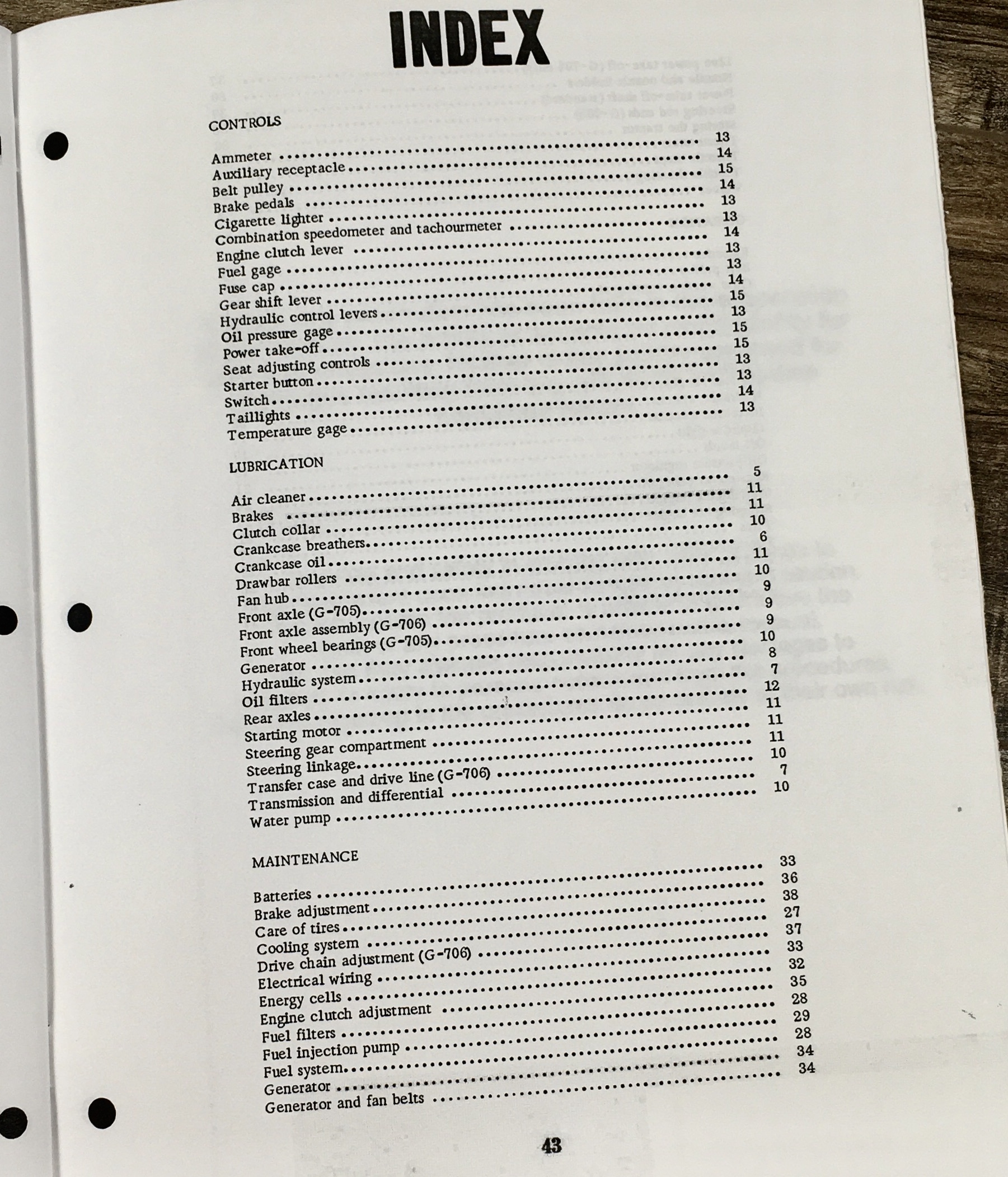 MINNEAPOLIS MOLINE G-705 G-706 TRACTOR OWNER OPERATORS MANUAL