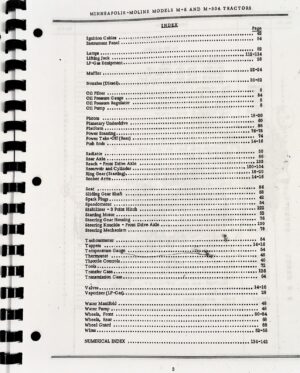This Complete Minneapolis Moline M504 Tractor Manual Setis an indispensable tool for both owners and mechanics who want to ensure their tractor runs smoothly and efficiently. It offers in-depth guidance for operating, maintaining, and repairing your Minneapolis Moline M504 tractor, making it invaluable for troubleshooting and upkeep. By including both the service/repair manual and parts catalog, this set provides full insight into the tractor’s functions and components, enabling precise and reliable repairs.