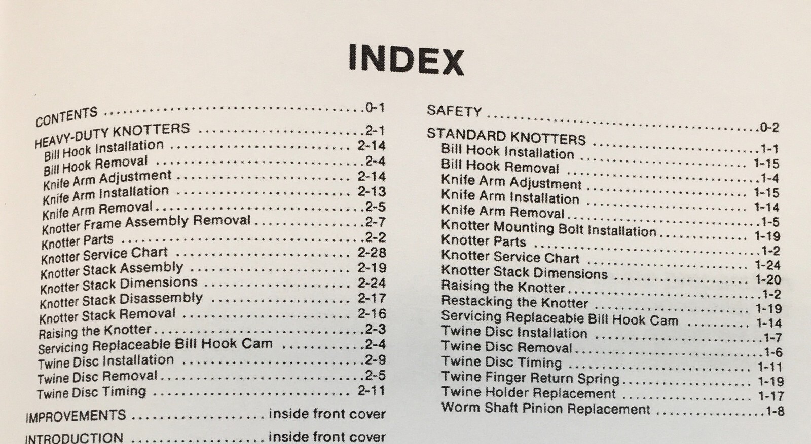 - Standard Knotter Service and Repair Manual to maintain knotter performance.