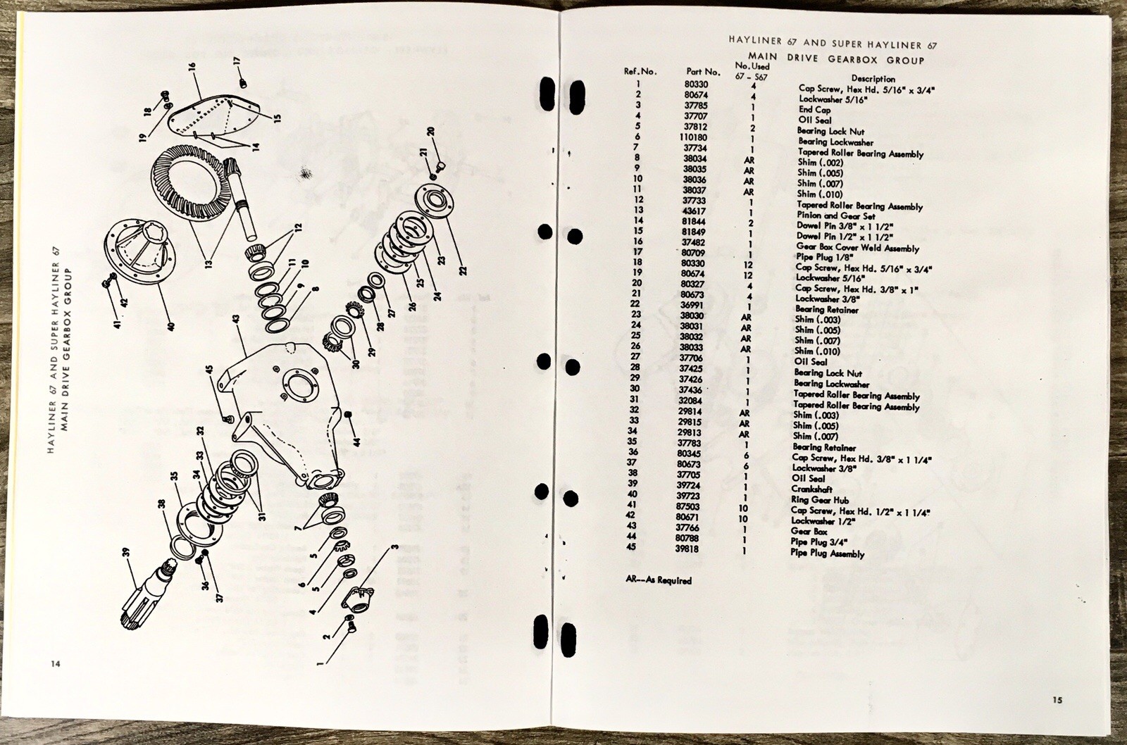 - Main Drive Gear Box Service / Repair Manual provided.