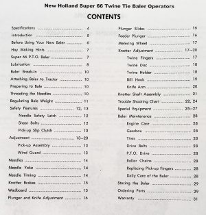 | Model Covered | New Holland Super 66 Twine Tie Balers |