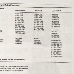 Fully covers Cummins Models NH & NT Diesel Engines