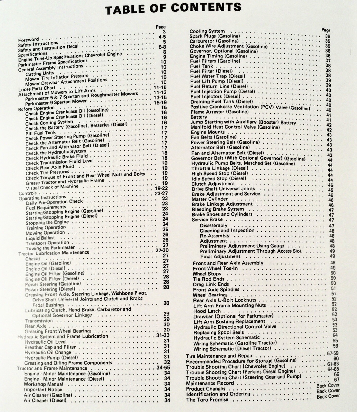 - Comprehensive coverage of Toro tractor models NO. 37027, PM 5, PM 7, PM 9 with both gasoline and diesel engines